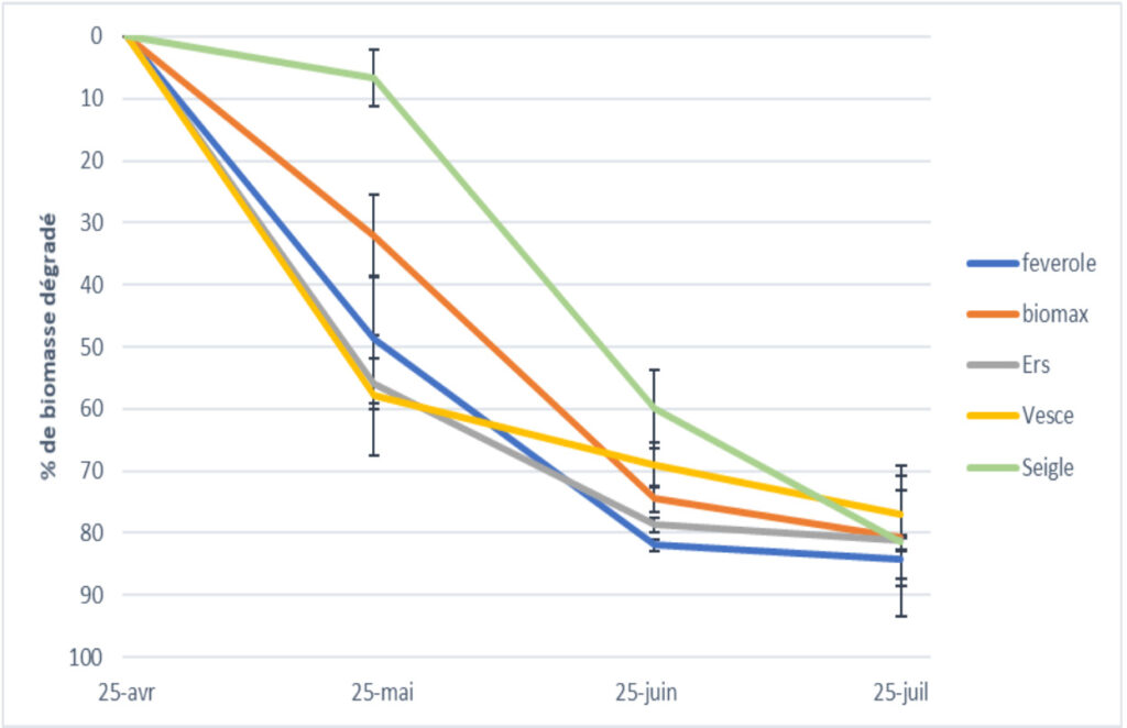 - Les vesces (variété Barvicos) à haut potentiel de biomasse sont plus efficaces que celles à plus faible (variété Mariana ou ers).