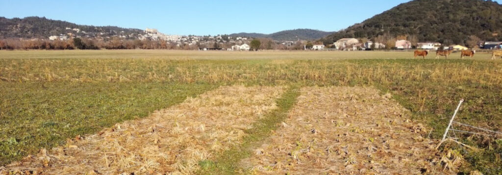 Bien que les services apportés par les couverts végétaux s’observent et se mesurent sur du long terme, les 4 années de projet ont déjà permis d’extraire des résultats intéressants. Les données présentées ci-dessous sont issues des mesures réalisées entre 2017 et 2020 sur la parcelle expérimentale pilotée par Agribio 04 chez un agriculteur, à Gréoux-les-Bains (04).